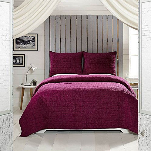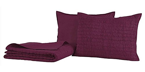 Studio : VHC Brands Publisher : VHC Brands Product Description Includes one twin quilt and one standard sham. Single fabric. Hand quilted, machine stitched. Overall ruching with 2 in. horizontal line hand quilting. Ruching creates a gathered, tucked look adding texture to the boysenberry quilt set. Straight edge with 0.5 in. solid boysenberry binding. Reverses to same color as front. Sham have three tie closures with 3 in. overlap to conceal pillow insert. Made from cotton shell. Made in India. No assembly required. Sham: 27 in. L x 21 in. W. Quilt: 86 in. L x 68 in. W (6.7 lbs.). Care instructions: Machine wash separately, front load commercial washer. Cold water, gentle cycle, no chlorine bleach. Do not tumble dry. Do not dry clean without first testing a small portion. This product may not withstand commercial cleaning chemicals or process due to the fragility of fabrics and handmade nature. 0