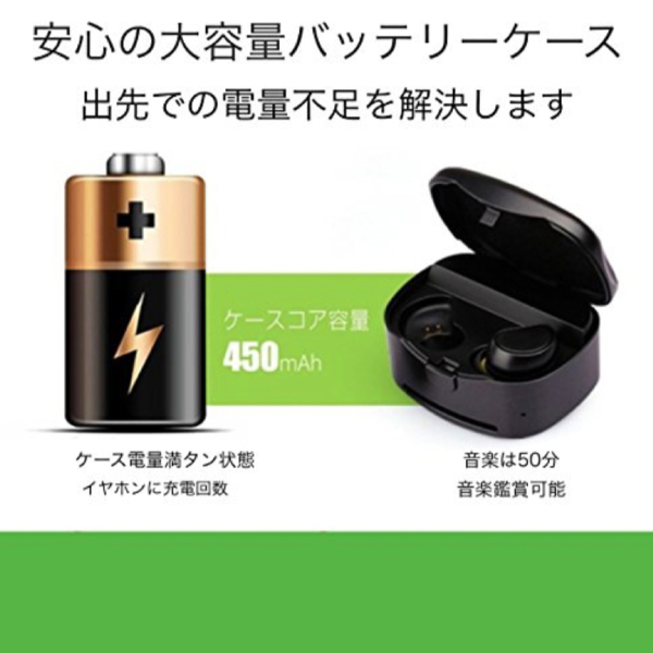 ? 充電式収納ケース:収納と充電一体式ケース付属し、イヤホンを紛失防止だけではなく、繰り返し充電も出来ます。満充電の充電ケースで左右イヤホンを約4回フル充電可能です。 スポーツ、出張、旅行などには最適です。