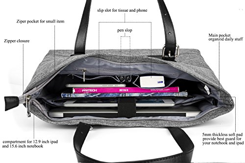 Product features: Type: Simple design classic style women Tote bag/shoudbag. Matireal:Made of high quality nylon and PU leather . Fit laptop size: max fit for 15.6 inch laptop Dimension:17x5.7x12.2inch(L*W*H),Top handle adjutable from 7.8 inch to 10.2 inch. zipper top closure ,It prevents your belongings from falling out. Ossicon: suit for business/tracking/shopping/office/wedding/dinner/Dating etc...