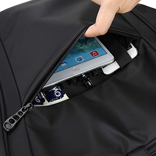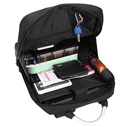 -. Feature : Durable Materials: Durable Materials: It's made of tear-resistant nylon fabric, which is waterproof (water-repellent). Served with adjustable shoulder straps, perfectly suits your body shape, lightweight, comfortable and easy to carry throughout all day / External Dimensions: 15.8H*12.2L*4.4D inches, holds up to 14" notebook computer and meets your needs of day round trips / Great Structure: 7 compartments, 1 front pocket organizer, then 1 big main compartment and 1 separate laptop compartment (padded for protecting your computer), 4 inner pockets. Perfectly holding your Laptop/Notebook/iPad, pen, wallet, watch, Mp3, Charger, A4 file, books, clothes, bottle, Umbrella / Multipurpose Daypacks: The thoughtfully designed backpack is perfect for business trips or weekend getaways or for simply heading to the office or school and home again