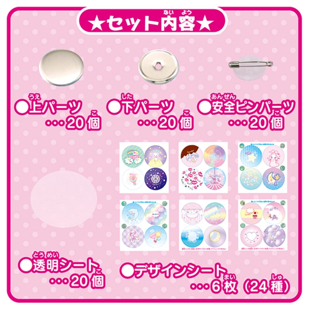 [Product content] Top part = 20, lower part = 20, safety pin = 20, transparent sheet = 20, design sheet = 1 sheet