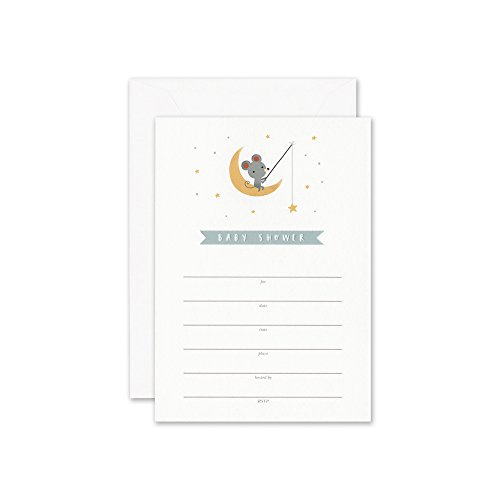 William Arthur Crescent Moon Mouse Baby Shower Fill-In Invitation (B107046)
