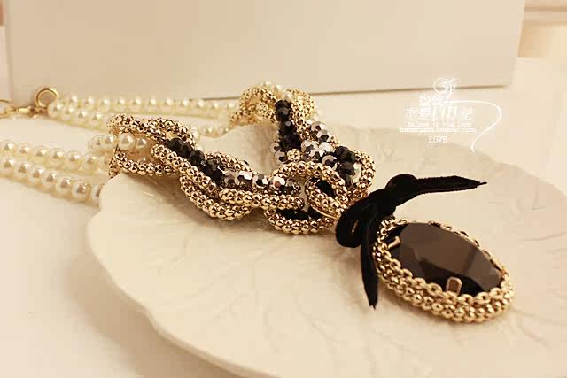 Material: 14 K gold plated / super color retention high quality artificial pearls crystal black stones