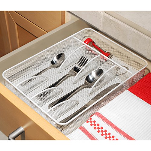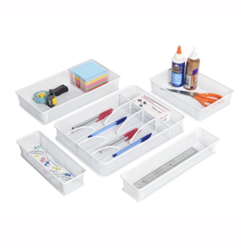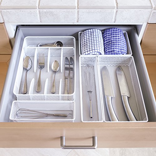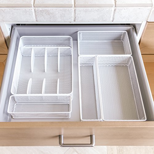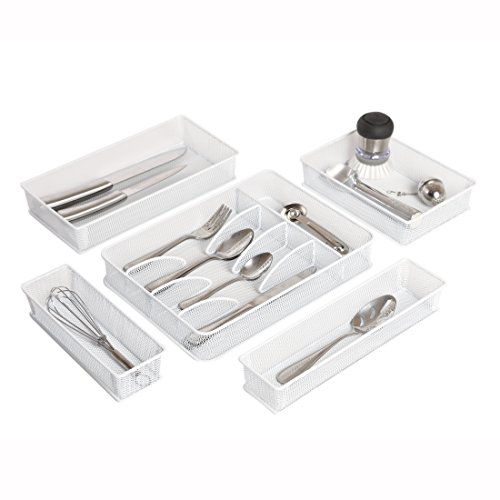 Seville Classics Steel Mesh Flatware Utensil Cutlery Tray Drawer Organizer and Box Assortment, 5-Piece Set, White