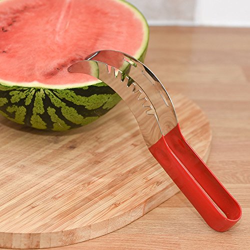 EAT MORE FRUIT: This multifunctional watermelon slicer & server are perfect for preparing healthy, fresh fruit salads and increasing your fruit intake. Our watermelon cutter slicer is ideal for cutting and serving watermelons, cantaloupes, honeydews, melons as well as other, tropical fruits, reducing prep time and helping you create fun fruit snacks and fruit salads for the entire family.