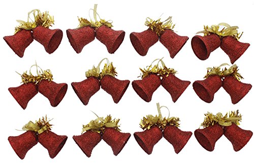 - Includes Set of 12 Red Glitter Twin Bell Ornaments with Gold Bow and Gold Hanging Ribbon