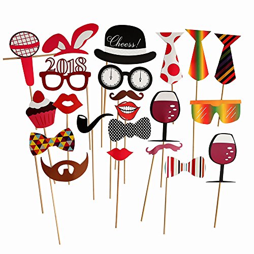 Christmas & New Years Eve Photo Booth Props 2018 NO DIY REQUIRED Funny Holiday Party Decorations for All Family - 23 Count