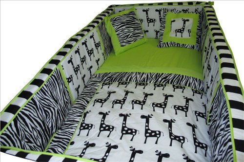 SISI Baby Boy Boutique - Lime Zebra 13 Pcs Baby Bedding Nursery Crib Set