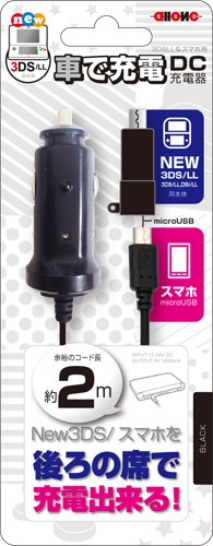 -. Feature : New3DS/ スマホを後ろの席で充電出来る! / 車のシガーソケットにDCアダプタを差し込み変換コネクタを使うことで対応機器(New3DS/LL,3DS/LL,DSi/LL,MicroUSB 対応スマートフォン,PSVITA2000) を充電できます。 / コード長2mなので車の後部座席2 列目でも充電しながらプレイ出来ます。 / 12V24V車に対応しております。