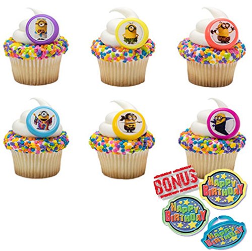 Despicable Me Minions Evolution Cupcake Toppers and Bonus Birthday Ring - 25 piece