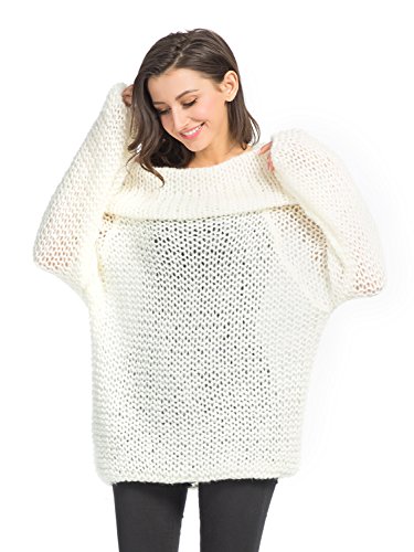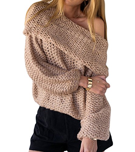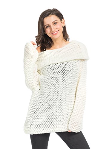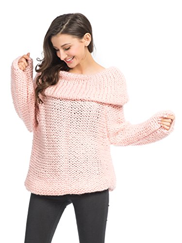Persun Women's Off Shoulder Chunky Long Sleeve Loose Knitted Sweater