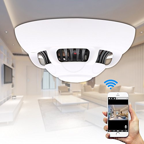 -. Feature : A mini camera built in the detector; video in 1080P tells you clearly what is going on; suitable for pet/baby monitor, and home security and surveillance; can be mounted on your wall or ceiling with screws include / Connect the camera to Wi-Fi and remotely view real-time video in VOTECOM App; App is compatible with both iOS and Android smartphones; supports only 2.4G Wi-Fi; receives Wi-Fi signal within 15 meters; before connecting the camera to Wi-Fi, you should connect it your smartphone via the hotspot it creates / Real-time video resolution is 1080P in max, and adjustable to low levels to adapt your Wi-Fi quality; simply snapshoot and record video into your smartphone while viewing real-time video for future revie / Push notification and snapshoot through VOTECOM App to notify you when motion is detected; easily select a motion sensitivity level from 7 levels; create a schedule and alarm interval to receive notification alerts to avoid unnecessary interruptions / One 8GB card is included; support micro SD card loop recording up to 64GB; simply create a schedule, select a resolution, and set a file length in the simple App page; charge it with your DC 5V adapter; reaching a full charge takes about 4h; 1.2h working after fully charged