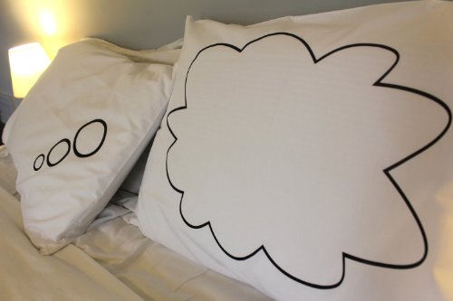 - Dreaming of you - two white 20" x 30" pillowcases. one pillow case has bubbles leading up to the second pillow with a giant thought bubble. place your dream boy / girl in your thought bubble!