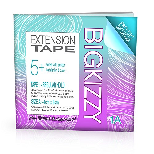 -. Feature : Our Regular Hold Extension Tape was designed for normal everyday wear. Recommended for clients with fine and/or thin hair. Lasts 5+ weeks with proper installation and care. Easy in/out - very little removal residue. / Standard Size (1A) - Hair Extension Replacement Tape. 4cm x 8cm. Ultra thin & lightweight tape - extremely durable when properly applied. Similar to Hot Heads extension tape. Also compatible with Hairdreams Quikkies, Babe & many other brands. / Available in 2 Holds: Regular Hold Extension Tape 1 (5+ Weeks) & Extra Hold Extension Tape 2 (7+ Weeks). For the best tape extension application ever make sure you choose the right tape suited for your hair needs and lifestyle. / People love us! And they hate us too. Kizzy Tape makes other tape companies a little uncomfortable! Developed, tested and used daily by hairdressers - Best Double Sided Extension Tape Preferred by Pro's. / BONUS: Step by Step Detailed Removal, Application/Reapplication Instructions + How to Style and Care for Tape Hair Extensions + Troubleshooting Guide Book Included.