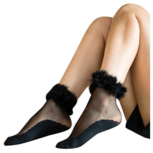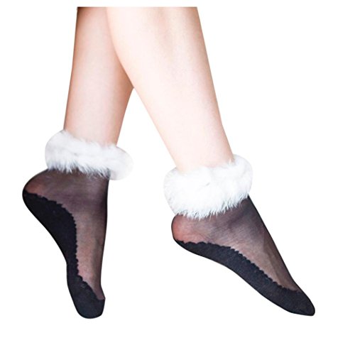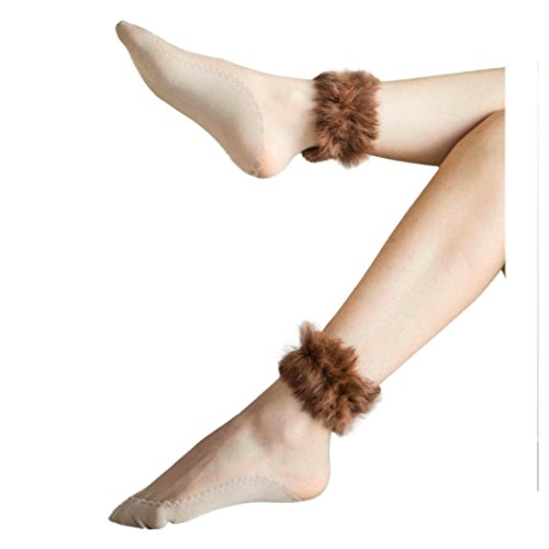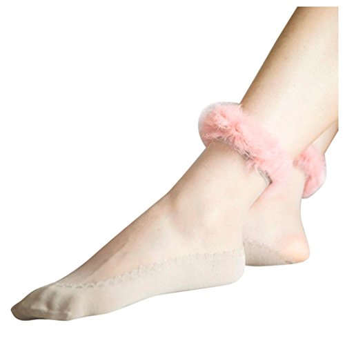(Inkach)/Women's/Sandals/DIRECT FROM USA/Inkach Trendy Women Short Socks Girls Ultrathin Transparent Crystal Elastic Faux Fur Socks