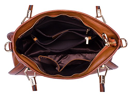 Features: Handmade. With 2 big inner compartment, 1 interlayer zipper bag, 1 interior zipper slot pocket, 2 open pockets for smartphone, credential and keys/lipsticks and 1 behind zippered pocket. Delicate zip closure is designed for the safety of your properties. The bottom of bag has four textured metal rivets which is effective for protection against wear.