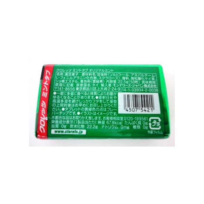 원본상품명: モンデリ?ズジャパン クロレッツ ミントタブ オリジナルミント 22.5g(50粒)×6個
