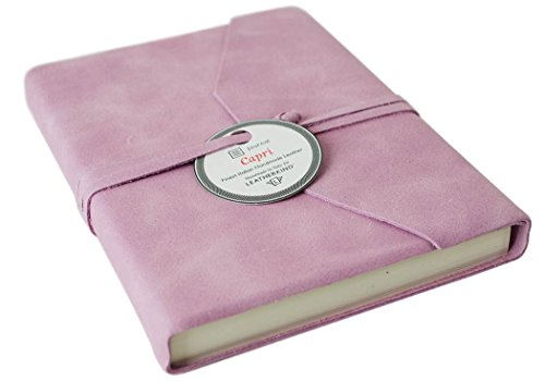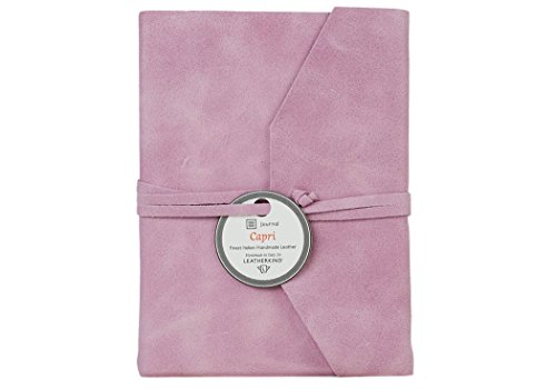 Capri Small Salmon Handmade Italian Leather Wrap Journal, Plain Pages (17cm x 13cm x 2cm)