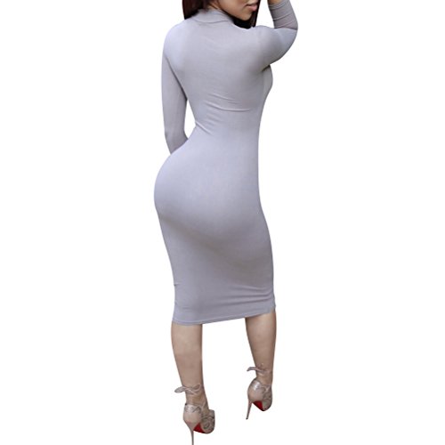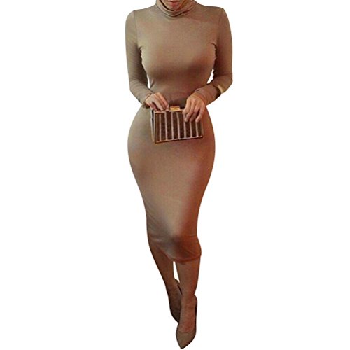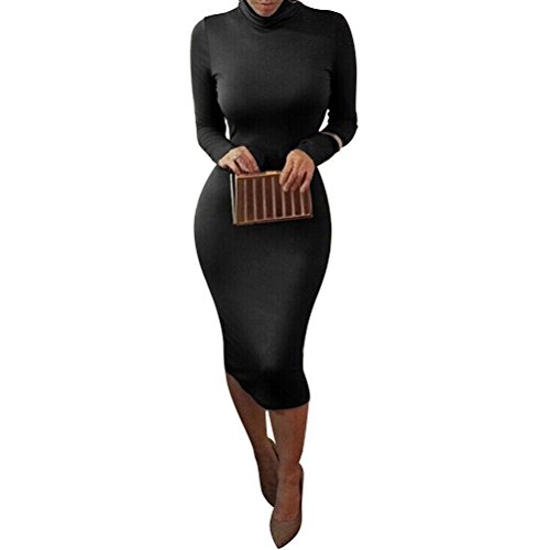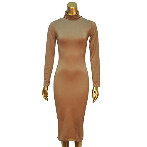 -. Title : Laiyuan Women Turtleneck Long Sleeve Slim Bodycon Wrap Tunic Pencil Midi Dress