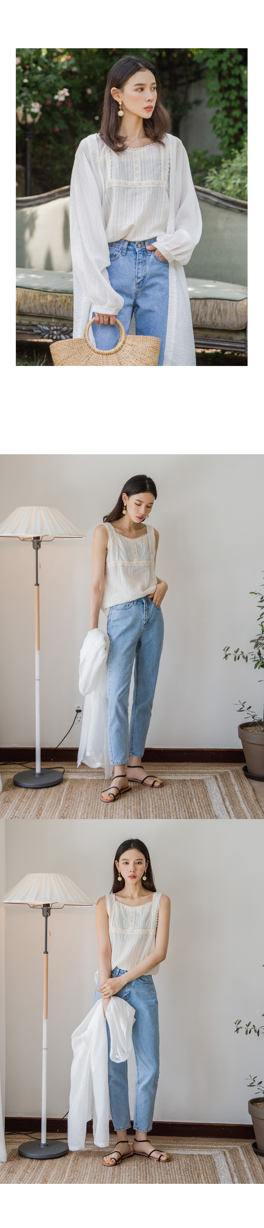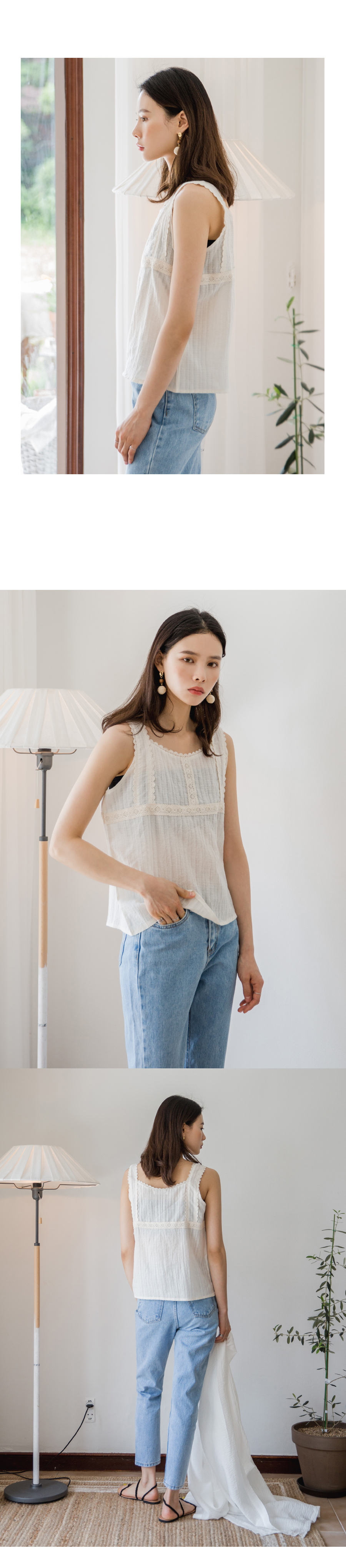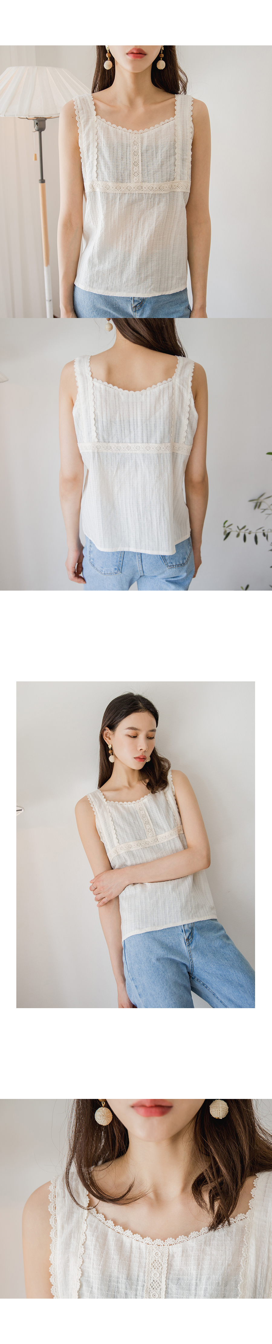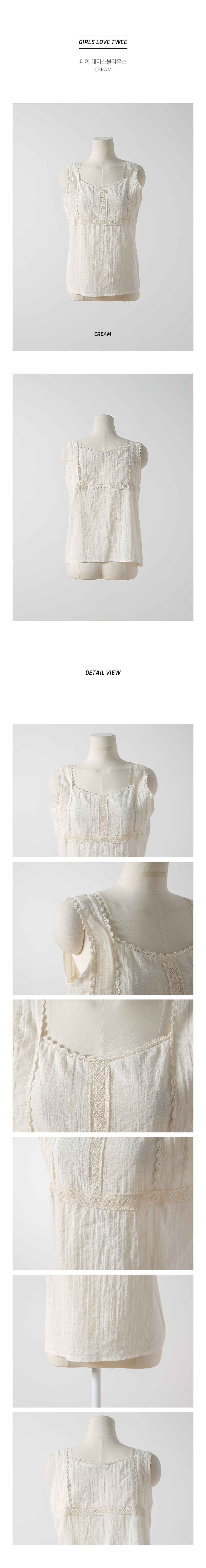 MD COMMENT페미닌하면서도 걸리시한 감성이 담겨있는 레이스 블라우스입니다전체적으로 여유있는 실루엣으로편안하게 착용하실 수 있구요 레이스,펀칭디테일의 스퀘어넥라인으로 시원하면서도 러블리한 무드로 연출해준?니다 안정감있는 어깨끈으로 부담없이 착용하실 수 있는 아이템이에요!