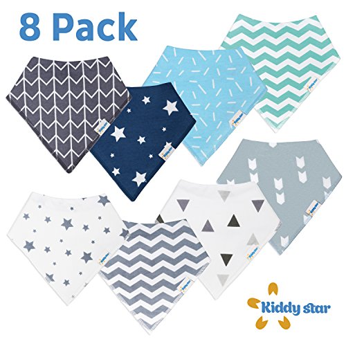 PACK OF 8 BABY BANDANA BIBS – Baby Drooling can be annoying not only for the babies (wetness) but for parents too (frequent changing of clothes), however, it’s time to be happy than being irritated as it’s an indication that the salivary glands of your creation, your baby, have started working well! KIDDY STAR Bandana Bibs come in a set of 8 pieces and makes life a lot easier & worry-free for you as it’s much more convenient to change and wash a bandana bib than a dress!