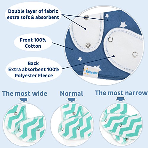 SMART MOISTURE MANAGEMENT - The double layered design of our bandana baby bibs helps in intelligent moisture management - the front layer is made up of 100% cotton which has high absorption capacity to restrict any fluid from crossing the bib’s boundaries. The back side has a polyester fleece which resists moisture and prevents it from passing through to your baby’s clothes - thus helping him/her stay dry all the time.