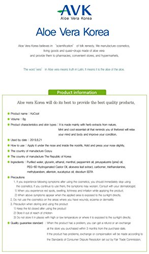 Aloe Vera Korea KoCool Aroma Essential oil, Pierce your nose blocked by rhinitis, refresh your stressed head 0.28oz(8g)