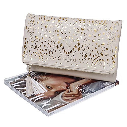 TURN HEADS with these GORGEOUS foldover style clutches with perforated gold accent designs