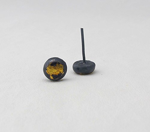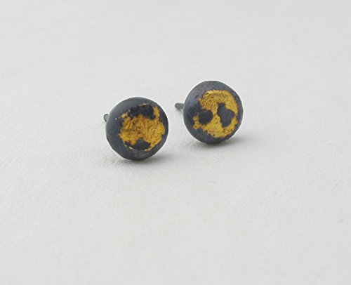 -. Title : 23 Karat and black oxidized Sterling Silver ball stud earrings