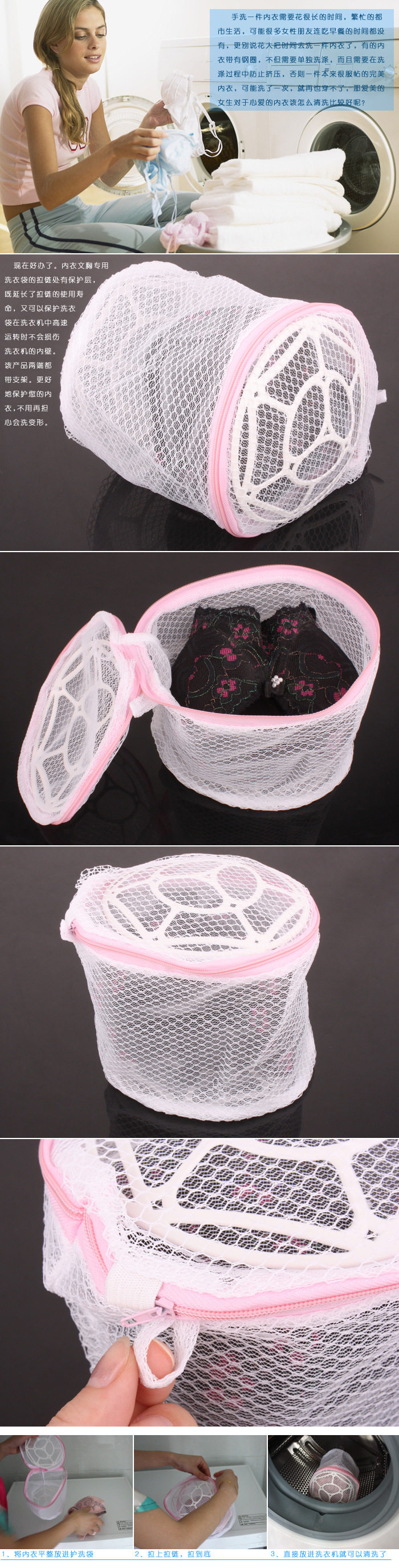 - 洗衣时,小衣衣的钩钩是不是常挂住其他衣服呢?丝袜是不是和其他衣服缠得一团,解不开呢?现在这些问题都好办了。内衣文胸专用洗衣袋的拉链处有保护层,既延长了拉链的使用寿命,又可以保护洗衣袋在洗衣机中高速运转时,不会损伤洗衣机的内壁。该产品两端都带支架。更好地保护您的内衣,不用再担心会洗变形。