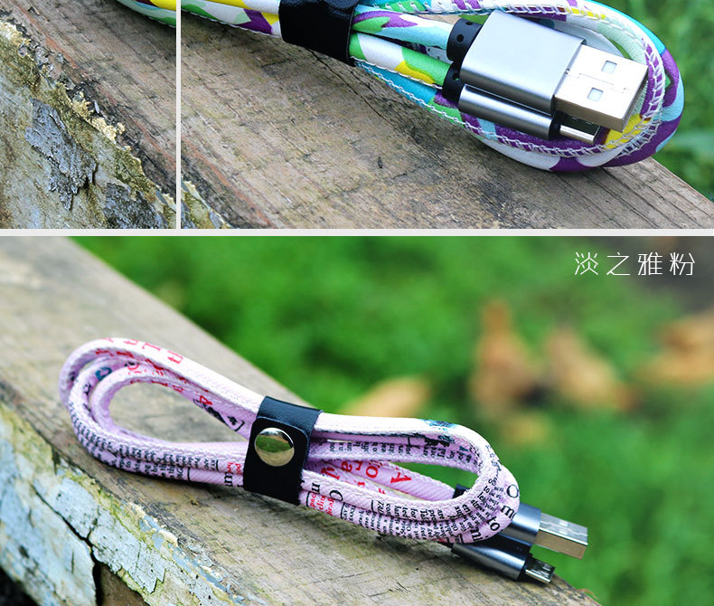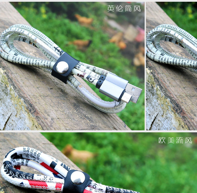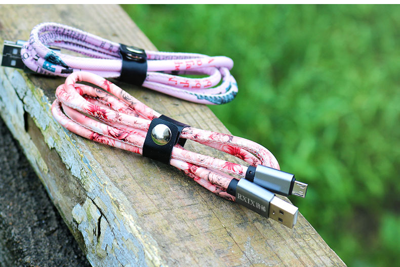 Leather pattern phone data charging cable