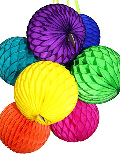 10 Pack Assorted Color 8 Inch Honeycomb Tissue Paper Party Balls (Rainbow)