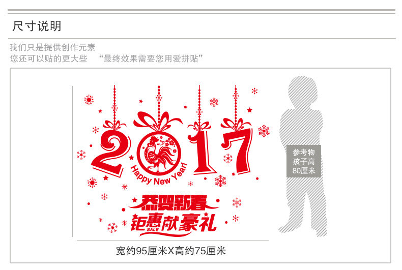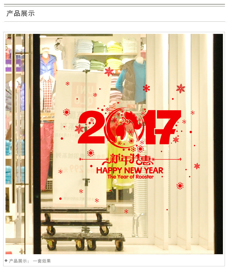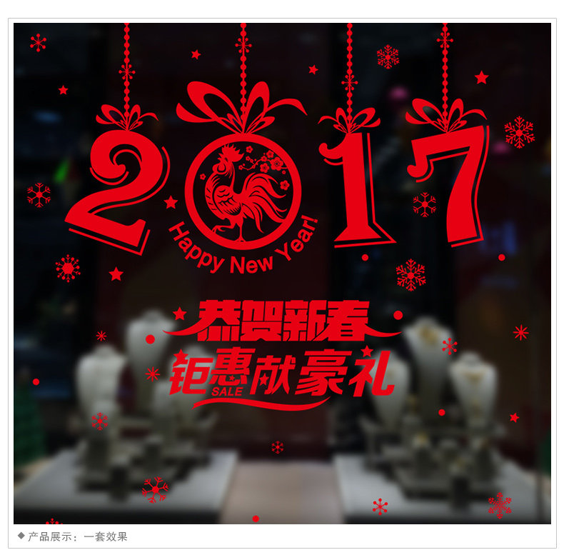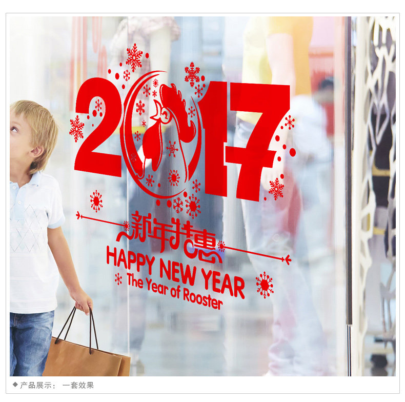 H.2017 New Year New Year Chinese New Year Wall Stickers Shop Glass Window Stickers Decoration Arrangement Window Decal