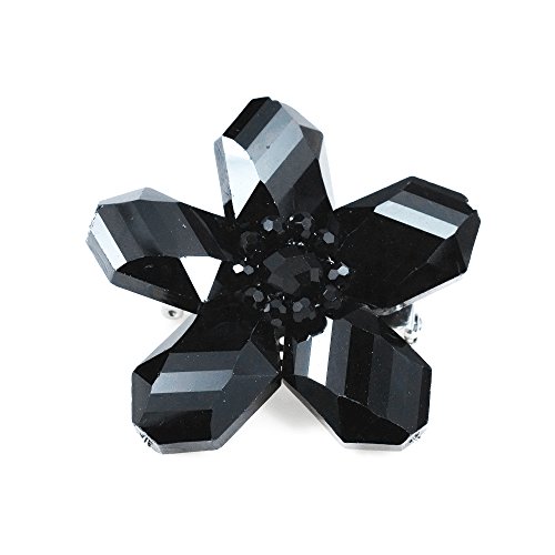 -. Feature : Material: Crystal, Glass, White Base Metal | Stone: Crystal | Color: Black / Design Measurement: 54mm (2.13 in) / Weight: 34.5 grams / Style: Handmade, Pin/Brooch, Floral / Includes an official 'AERAVIDA Fair Trade Sourcing' Card with certified Seal of Authenticity.