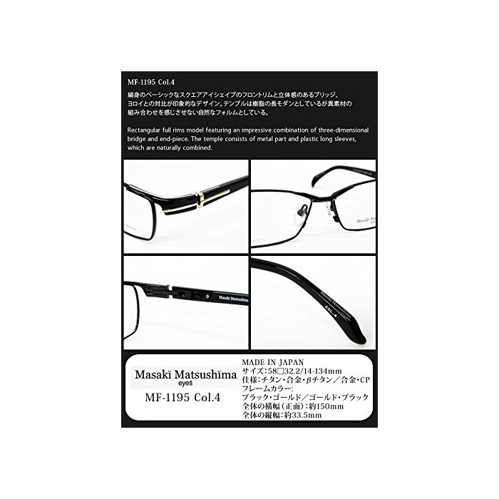 원본상품명: (マサキマツシマ)薄型非球面レンズ付 Masaki Matsushima MF-1195 Col.4(ブラックゴルド/ゴルドブラック)レンズ付メガネセット(度付き)