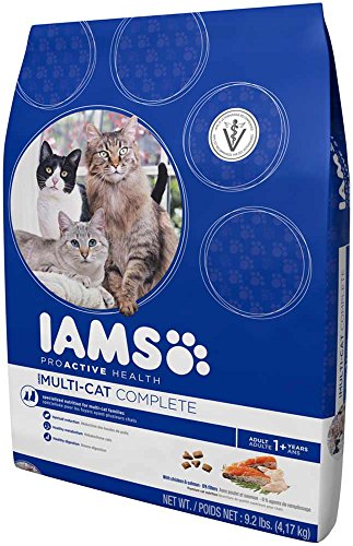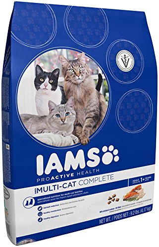 - Feature : Contains one (1) 9.2-pound bag of IAMS PROACTIVE HEALTH Adult Multi-Cat Complete Chicken and Salmon Recipe Dry Cat Food / Multi-cat formula designed for cats with different body types / Our hearty cat food has a fiber blend with prebiotics and beet pulp that reduces hairballs and promotes digestive health / IAMS PROACTIVE Cat Food with L-carnitine helps burn fat and maintain a healthy metabolism / Our wholesome cat food uses 100% high-quality protein and 0% fillers