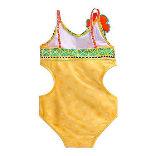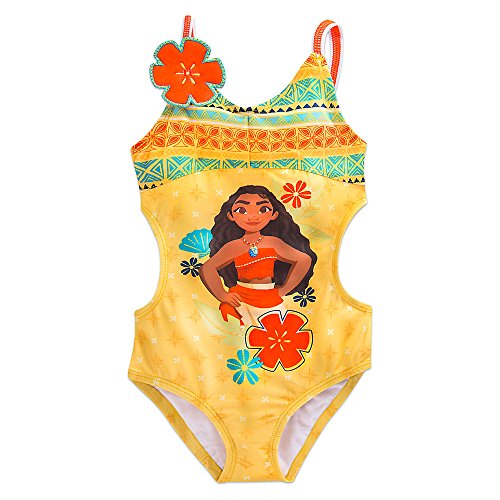 Genuine, Original, Authentic Disney Store One-piece swimsuit Moana sublimated ink art on front Allover satin finish Embroidered hibiscus applique Brand : Disney Item model num : 458032391762 Package Dimensions(LxWxH) : 28x25x2cm ; 91 g