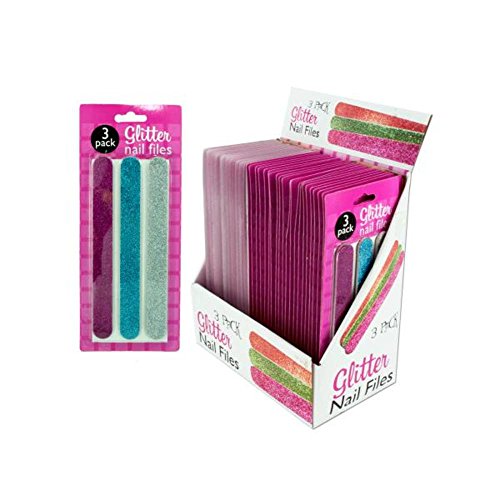 Studio : Bulk Buys Publisher : Bulk Buys Binding : Misc. Product Description These jumbo nail files are great for the girl who loves her glitter. Each features a full glitter back, giving these a "bling" quality you don't always find in nail files. Each of these measures 3/4" x 7". Package includes 3 files. 0