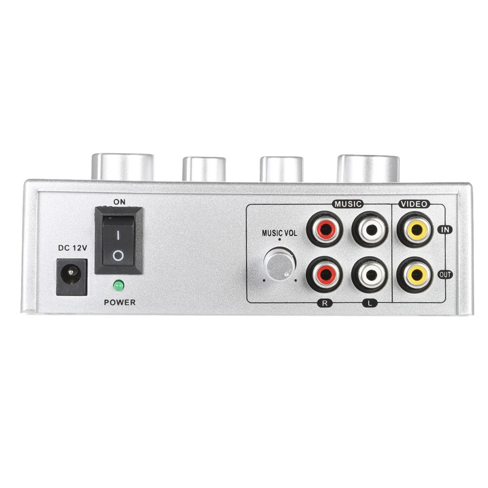 Dual microphone input, video input, audio output for video signal, volume can be adjusted separately.