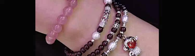 天然水晶石榴石手链女 925银生肖猴多层3圈手串 送朋友生日礼物
