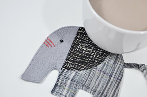-. Title : Grey Elephant Household Asian Thai Style Handmade Craft Sewing Cute Couster Cotton Fabric Elephant Shape Saucer From Chiangmai Thailand, Set of 4