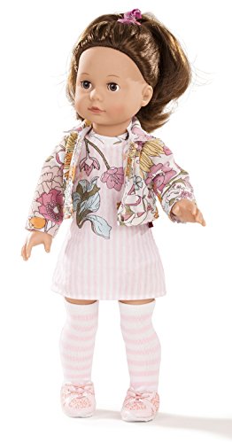 46 cm grosse Stehpuppe mit braunen langen Haaren und braunen Schlafaugen - 9-teiliges Set bestehend aus der Bekleidung, einem Zopfhalter und einer Styling-DVD