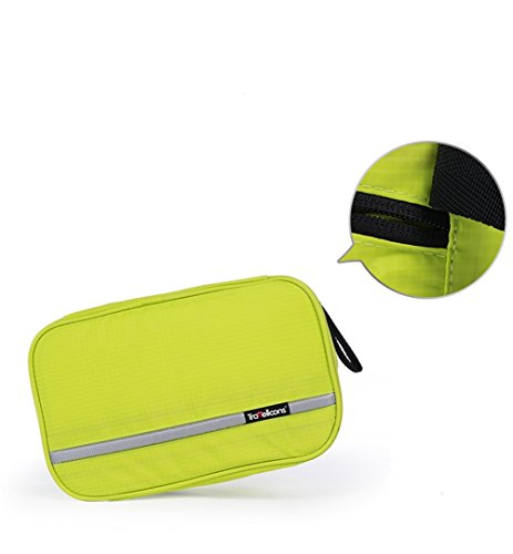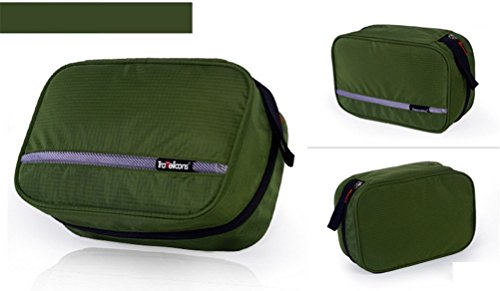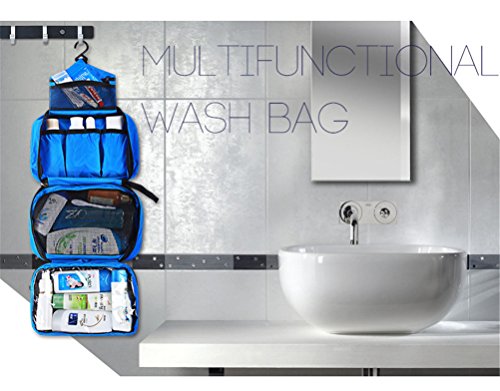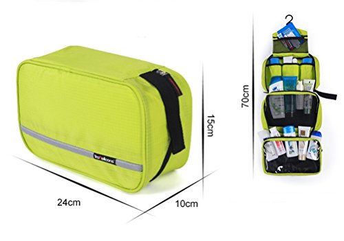 -. Feature : Material: durable oxford cloth, with a built-in plastic hook, convenient to hang up. / Size information: 9.6 * 6.3 * 3.1inches (24.5 * 16 * 8cm). / 5 colors available: blue, black, tender green, army green, orange. / Space: one spacious main compartment made of light netting with 5 additional pockets. / Applicable to the desktop storage, travel storage, toiletries storage, make-up admission. Be careful with dimensions, it doesn't fit full-size bottles of shampoo and shower gel, etc.