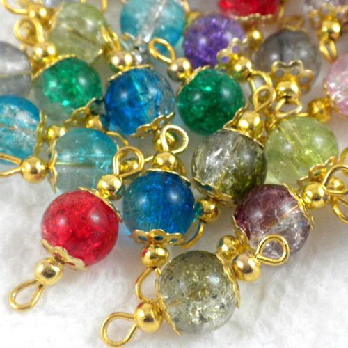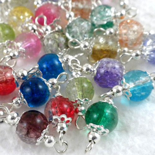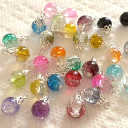 This item is for 30pcs of these 100-percent handcrafted luxury crackle glass round beads drops with silver wire and filigree bead caps. The crackle round beads size are 8mm in dia, luxury drops, good fit for earrings or charm bracelets. Very charming and amazing. If you need special color, pls. Contact us after purchase.Feature