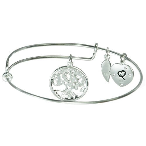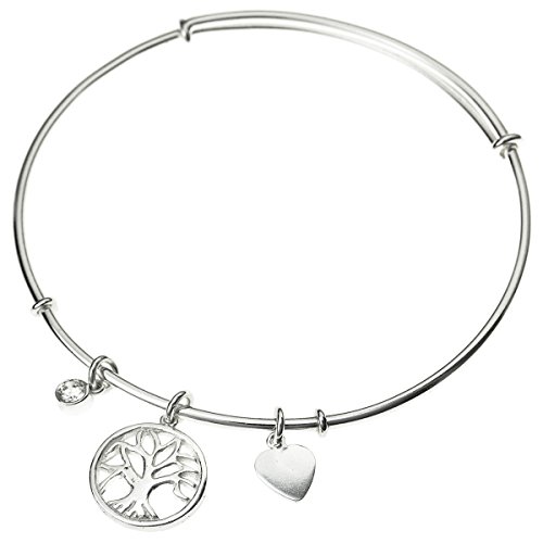 -. Title : Sterling Silver Family Tree Heart Leaf Charm Expandable Wire Bangle Bracelet