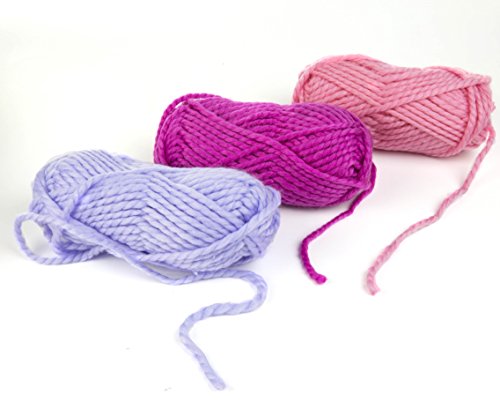 SPECIFICATIONS: Package includes (3) skeins of yarn (totaling 90 yards), (1) hand loom, (1) large circular loom, (3) assorted needles, and assorted buttons and beads. Please note: Product contains sharp points, for ages 7 and up.