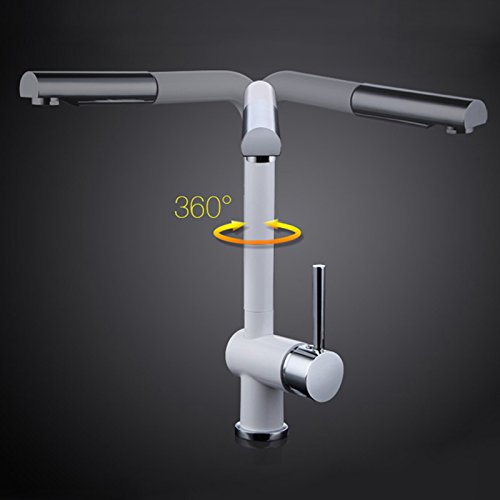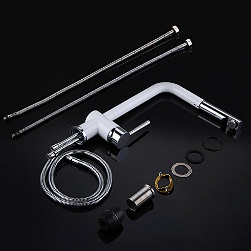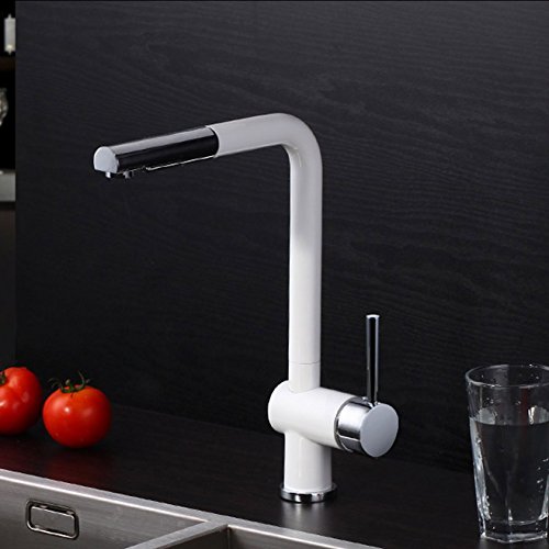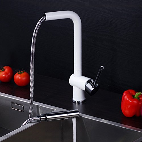 KunMai Modern Solid Brass Single Lever One Hole Pull-Out Spray White Chrome Kitchen Sink Faucet & Swivel Spout
