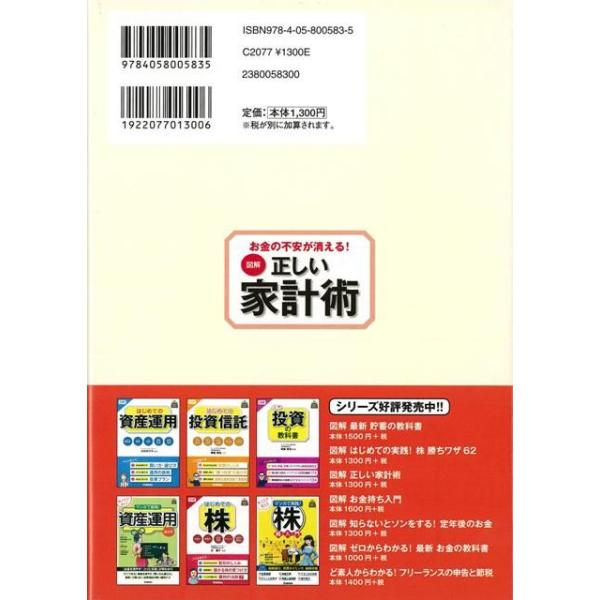【商品基本情報】 商品名称:図解正しい家計術 お金の不安が消える! 著者/出版社:ゆりもと ひろみ/ゆりもと ひろみ 初版発行日:2015/12/15 サイズ:A5判 ページ数:157 ISBN/JAN:9784058005835/4528189564183