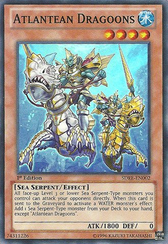 -. Binding : Toy -. Brand : Yu-Gi-Oh! -. EAN : 0792158911146 -. Edition : 1st -. Feature : A single individual card from the Yu-Gi-Oh! trading and collectible card game (TCG/CCG). / This is of Super Rare rarity. / From the Structure Deck: Realm of the Sea Emperor set. / You will receive the 1st Edition version of this card. -. IsAdultProduct : 0 -. ItemPartNumber : SDRE-EN002 -. Label : Konami -. Manufacturer : Konami -. Model : NA -. MPN : LYSB009RVLH6O-TOYS -. PackageQuantity : 1 -. PartNumber : LYSB009RVLH6O-TOYS -. ProductGroup : Toy -. ProductTypeName : COLLECTIBLE_CARD -. Publisher : Konami -. Studio : Konami -. Title : Yu-Gi-Oh! - Atlantean Dragoons (SDRE-EN002) - Structure Deck: Realm of the Sea Emperor - 1st Edition - Super Rare -. UPC : 792158911146