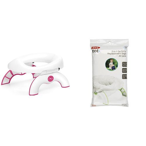 OXO Tot 2-in-1 Go Potty for Travel in Pink and Go Potty Refill Bags, 30 Count